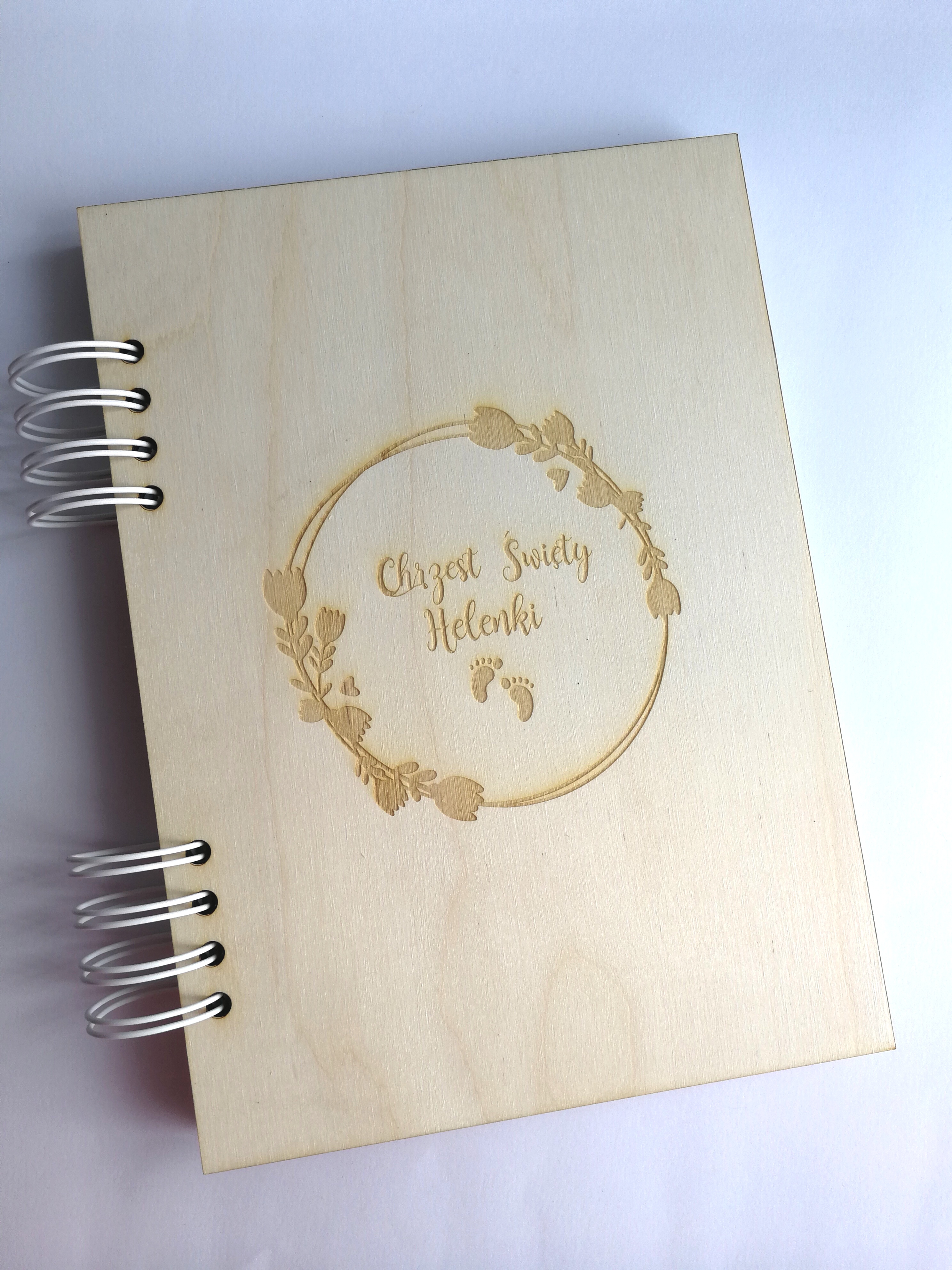 Album drewniany grawerowany  o wymiarach 18 cm/25 cm na zdjęcia 15/23 cm. Wewnątrz okładki znajduje się stick na płytę DVD . Album z 10-cioma kartami białymi  oraz białą spiralą , możliwość wykonania  z czarnymi kartami jak również z czarną spiralą (proszę w komentarzu do zamówienia o podanie koloru albumu).