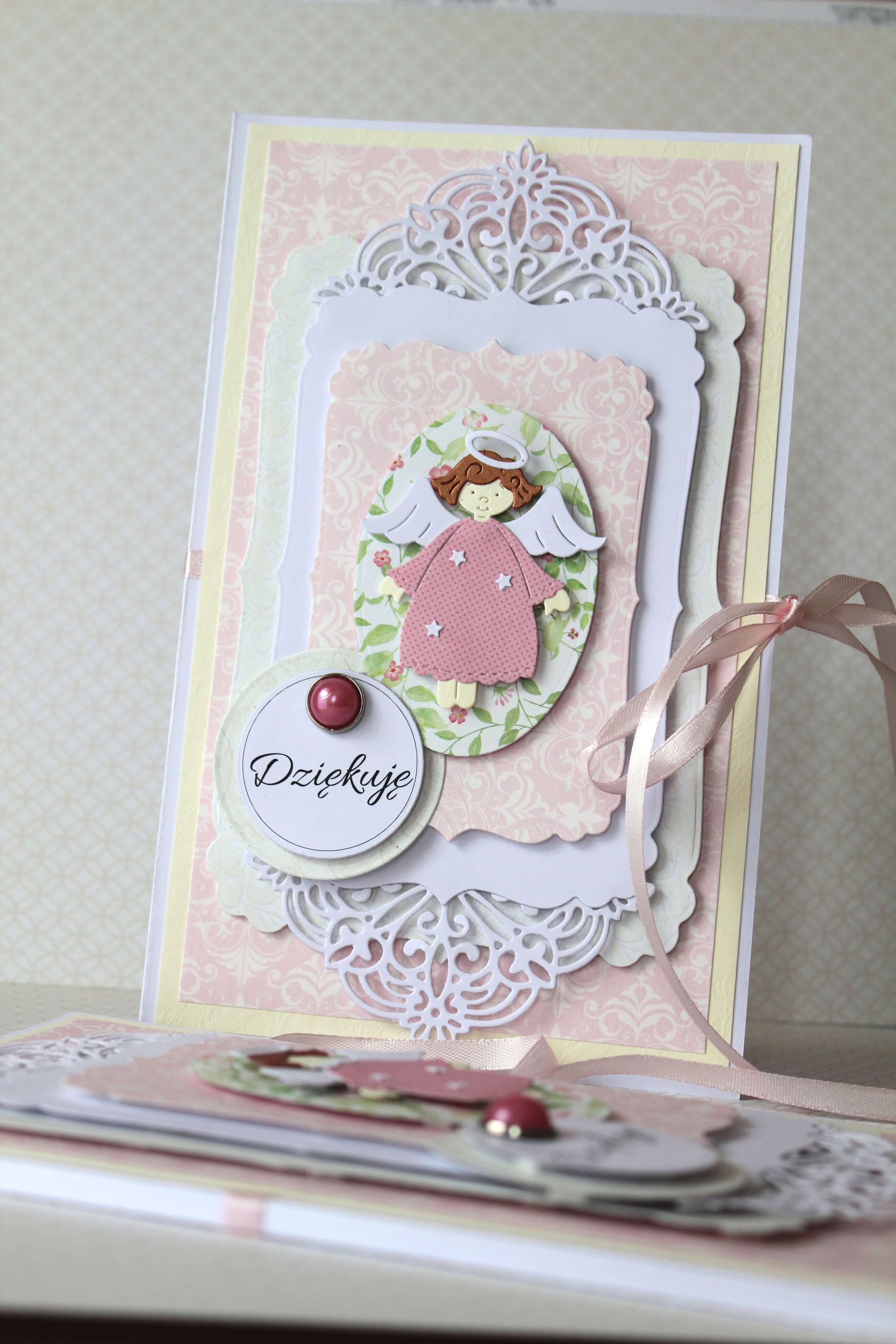Podziękowania są w formie kartki , wykonanej z wysokiej jakości materiałów do scrapbookingu.