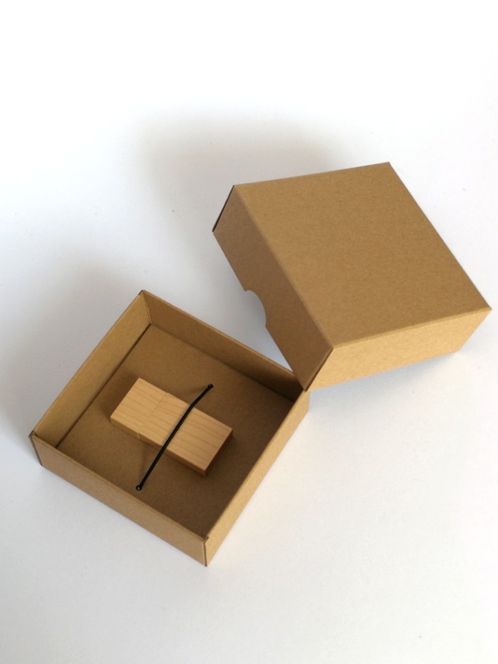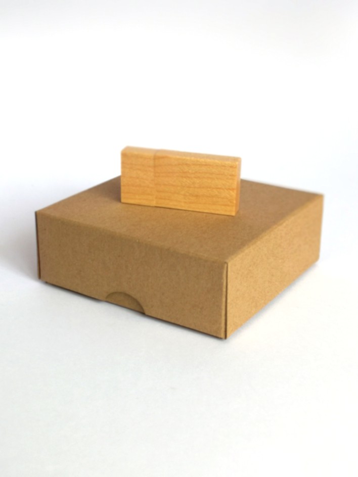 Pudełko ECO na pendrive, wykonane z kartonu 350 gr wraz z gumką do mocowania pendrive.