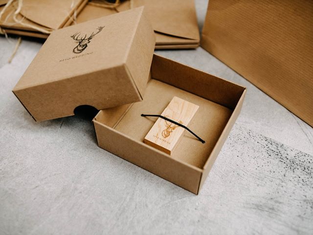Pudełko ECO na pendrive z własnym nadrukiem - logo, wykonane z kartonu 350 gr wraz z gumką do mocowania  dostępnych na rynku pendrive.