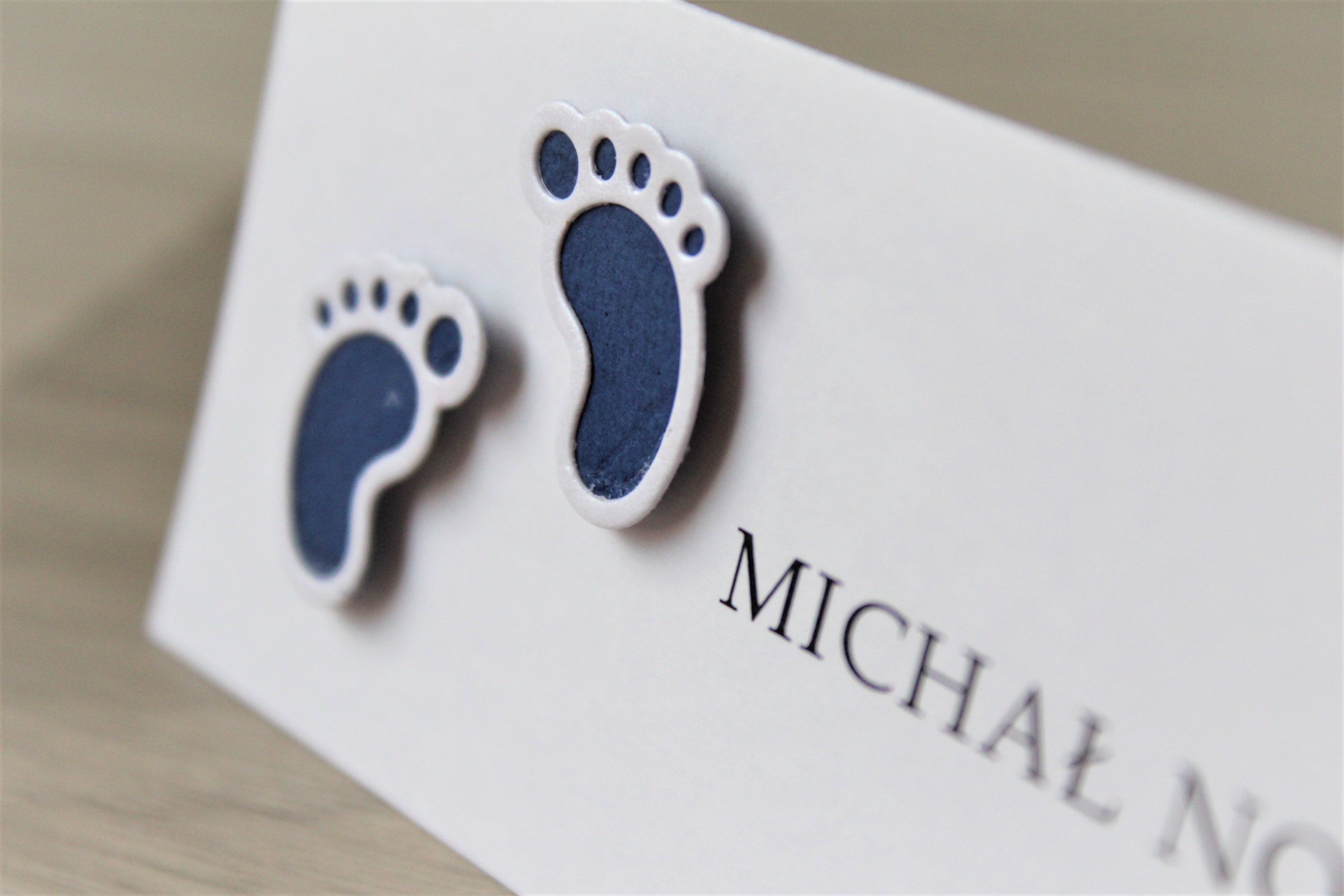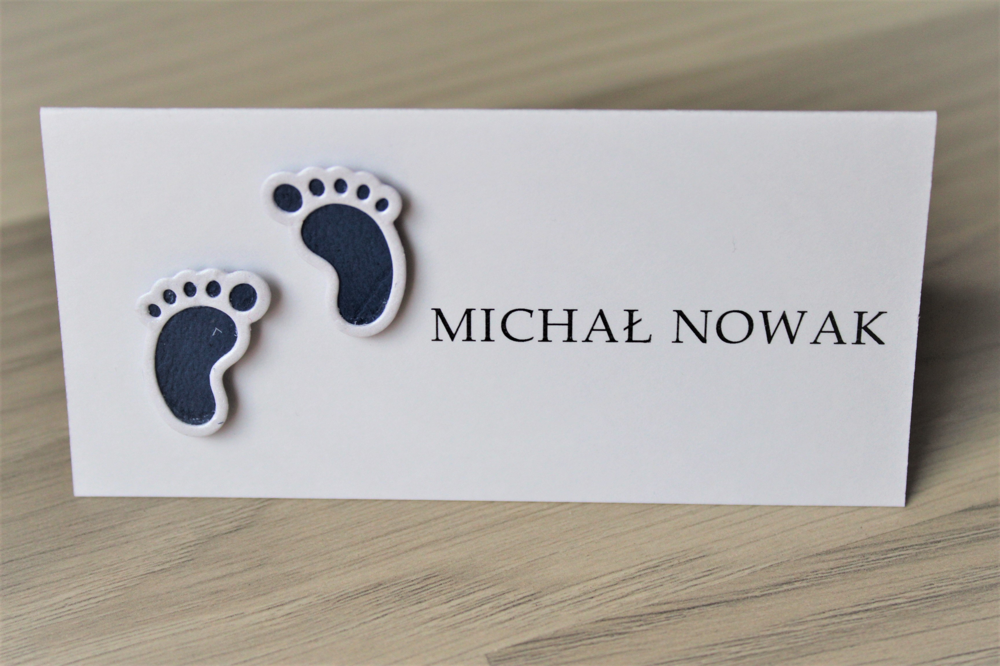 Minimalistyczne winietki w ozdobnym elementem na stół podczas uroczystości Chrztu Świętego, Komunii lub Urodzin.
