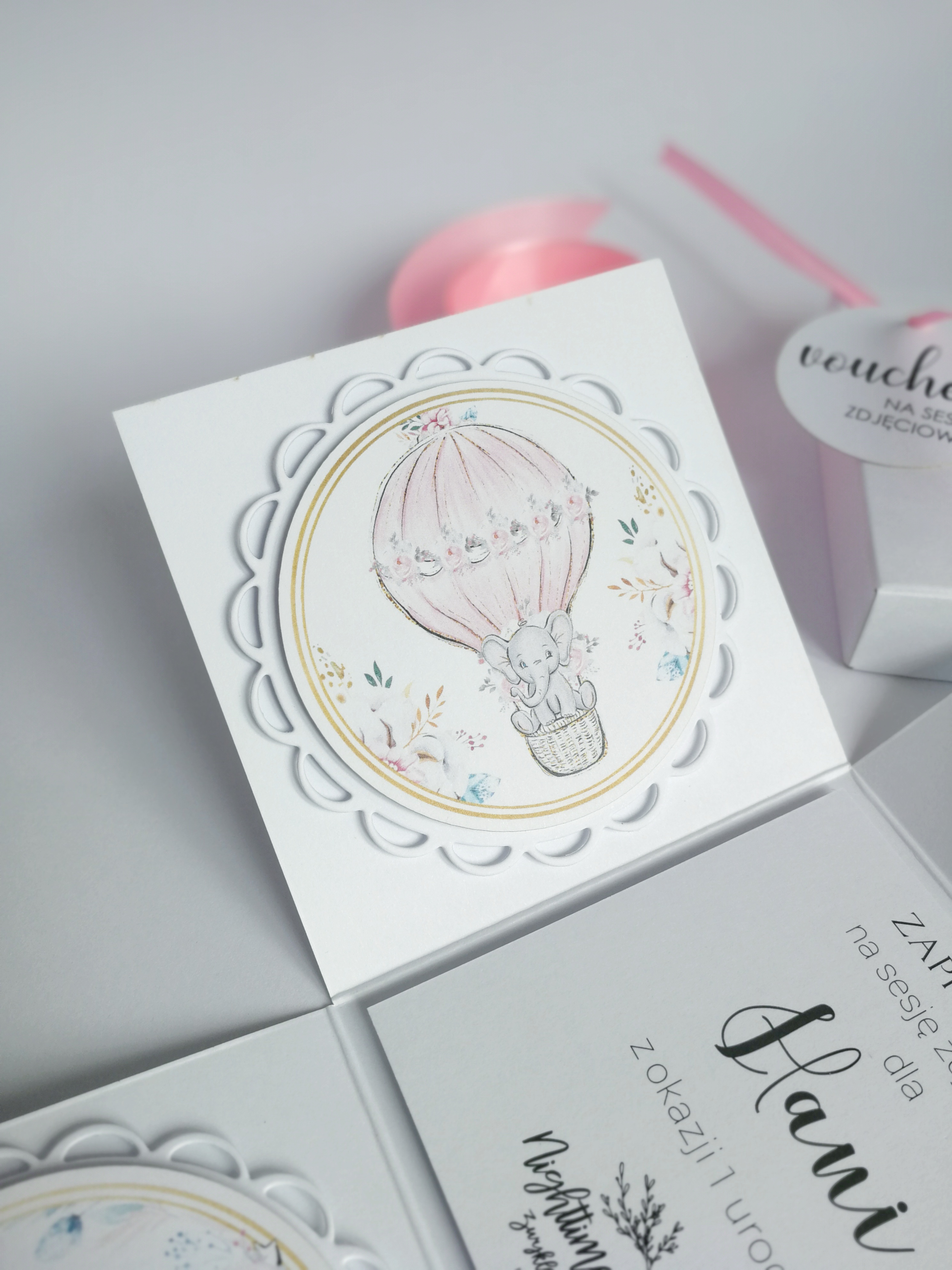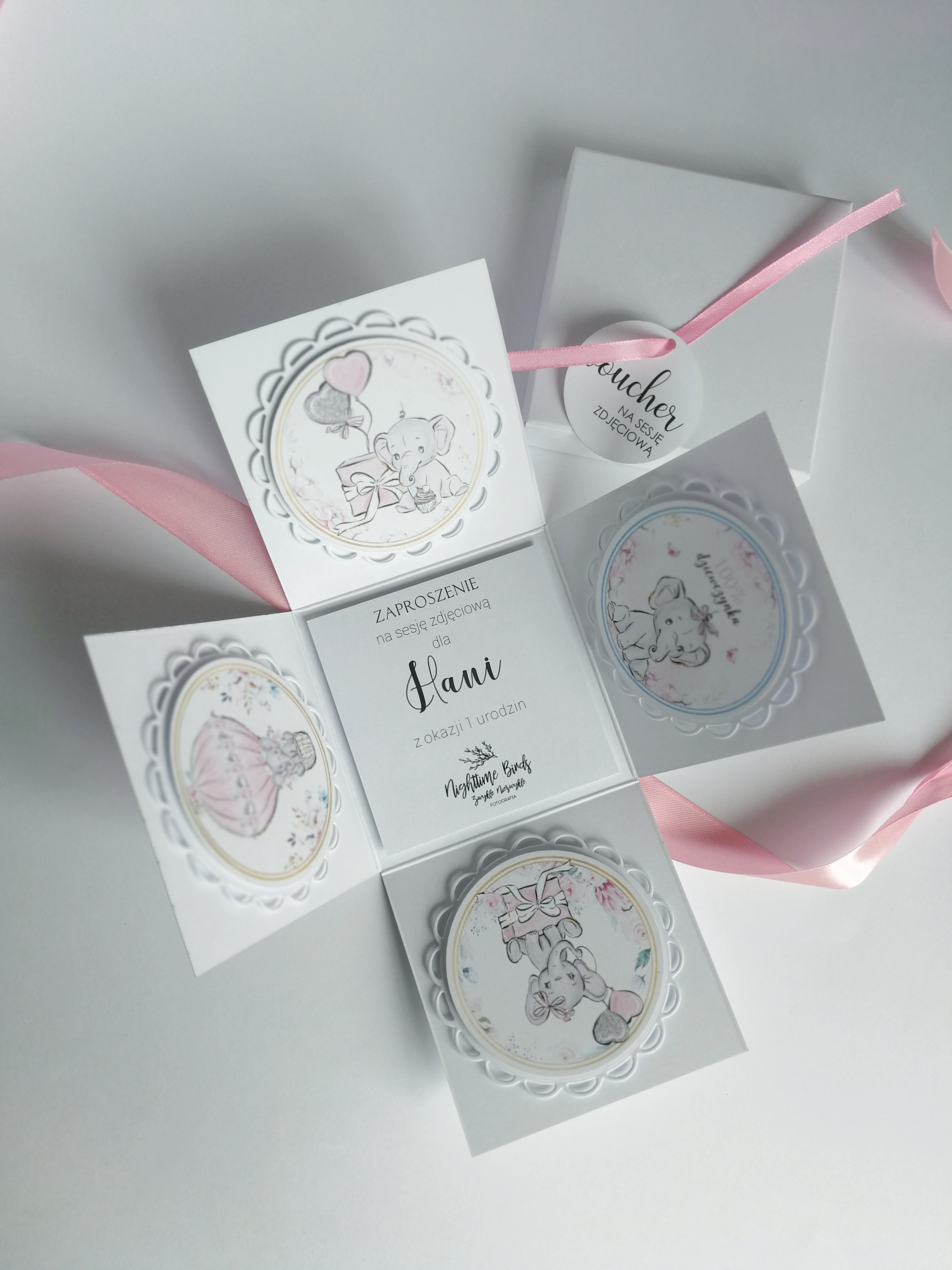 Zaproszenie na sesje zdjęciową w formie otwieranego boxu z personalizacją.